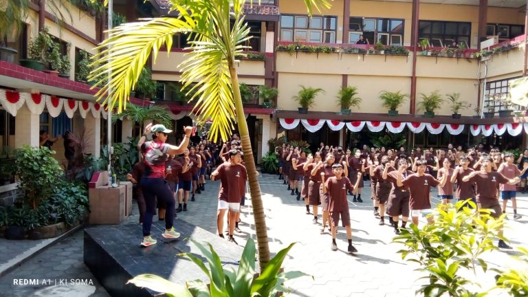 SMP Maria Immaculata membiasakan kegiatan senam bersama sebagai...